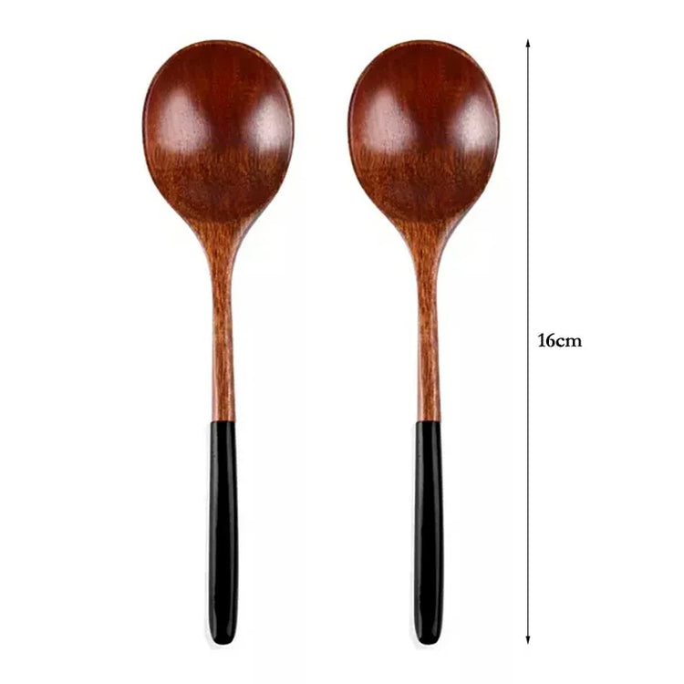 2-Piece Wooden Spoon Japanese Style Rice Soup Dessert Spoon, Long Handled Wood Spoon Soup Ladle Teaspoon Coffee Stirrer, Small Dining Spoon for Kids, Wooden Tableware