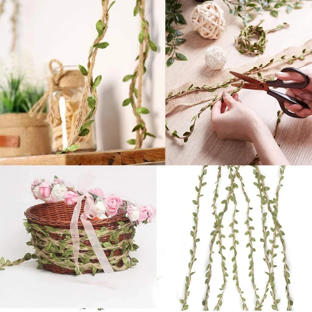 5M Artificial Vine Natural Hemp Rope Jute Burlap Twine Hemp Ribbon Macrame Wall Wedding Home Garden Decor Party Supplies