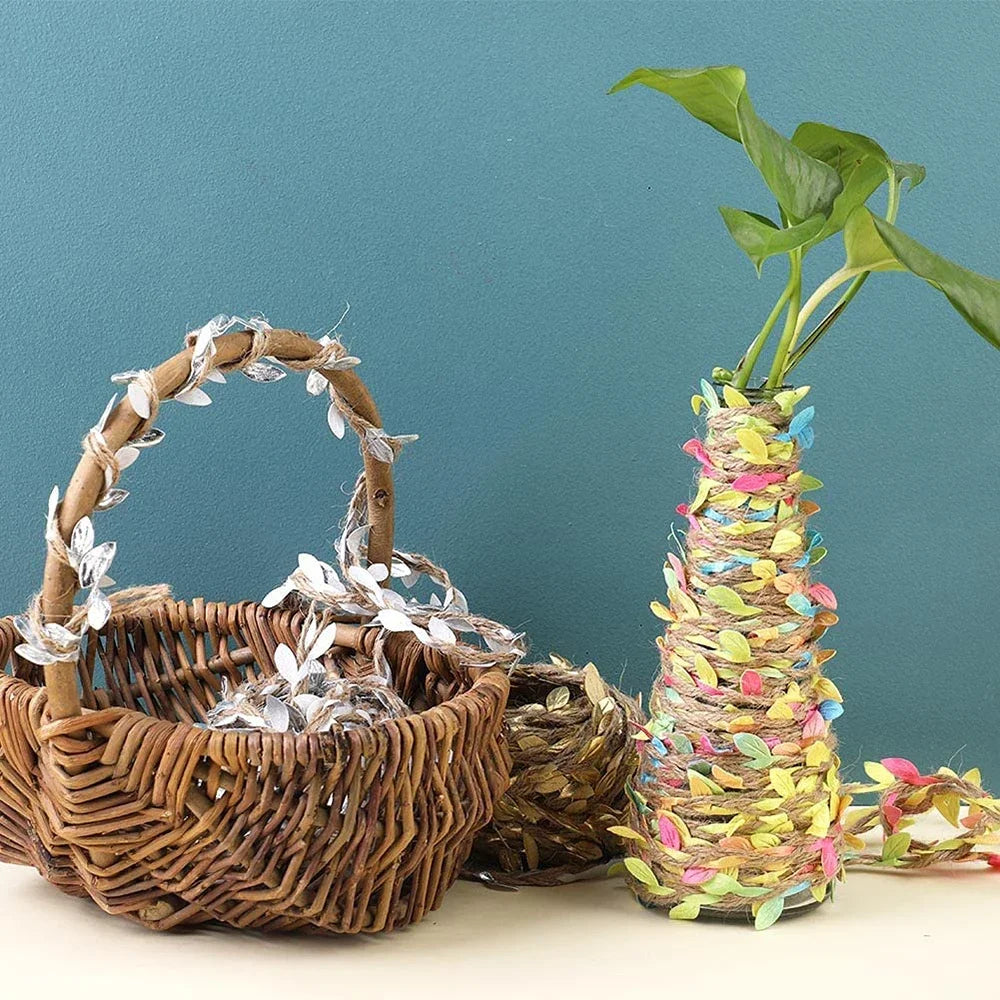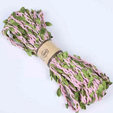 5Meter/lot Natural Jute Twine 5MM Burlap Leaf Ribbon with Artificial Vine Green Leaves for DIY Crafts Wedding Garden Party Decor