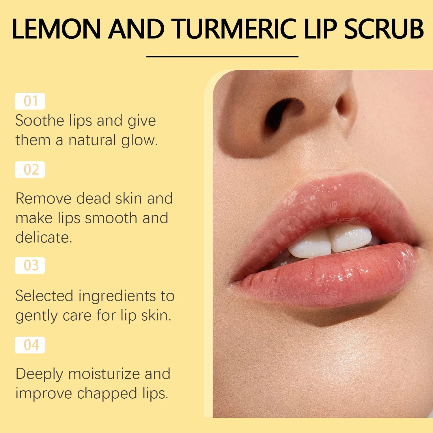 1. Natural integration of turmeric and lemon essence can gently remove dead skin without irritation and protect delicate lips.