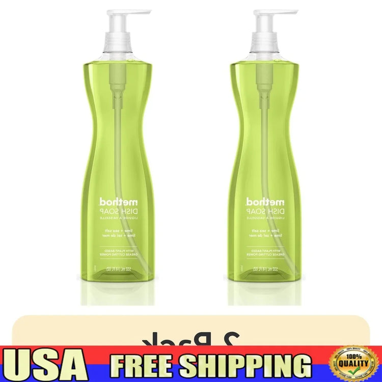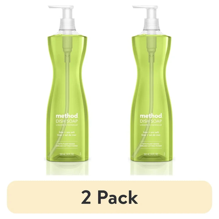 2 Pack Biodegradable Dish Soap Lime Sea Salt Scent Ultra Grease Fighting Plant Based Liquid Pump Bottle 18oz Eco Friendly