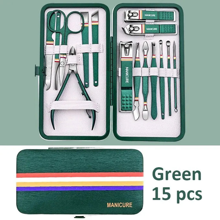 Ouriner 6-18Pcs Portable Manicure Sets Pedicure Kits Bright Black Nail Clipper Set Personal Care Tools Eyebrow Scissors