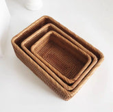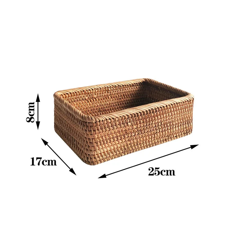 Hand-woven Rattan Wicker Basket Fruit Tea Snack Bread Basket Cosmetic Rectangular Storage Box Household Kitchen Supplies