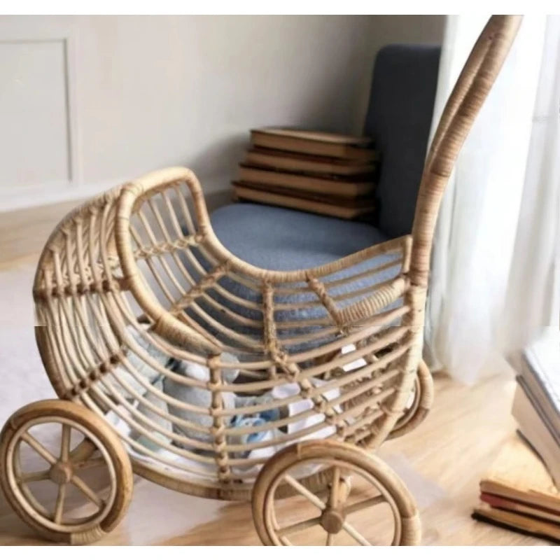 Handmade eco-friendly materials rattan doll stroller toys children's toys stroller sustainable carrier