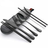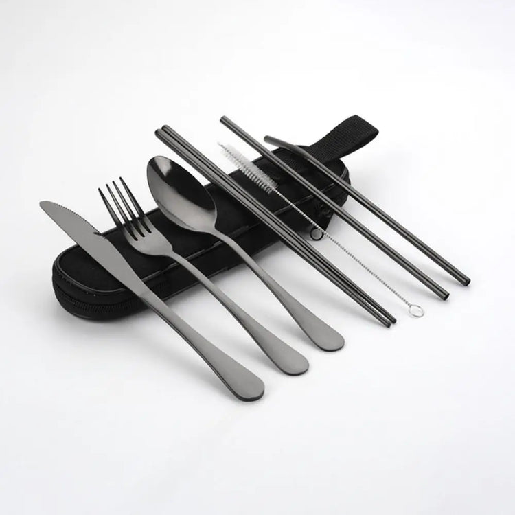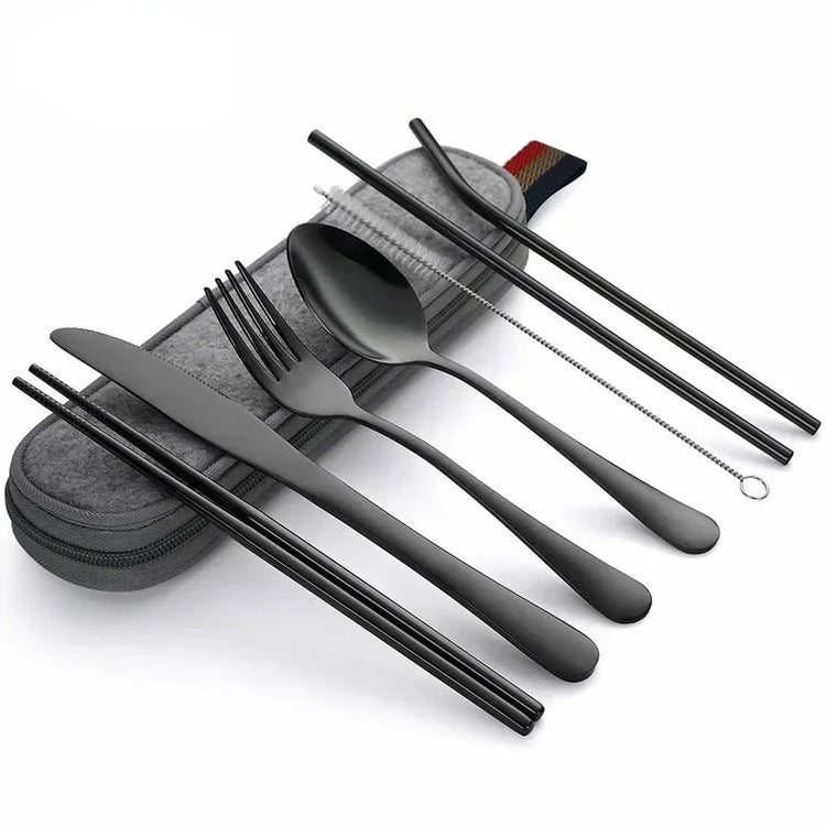 8Pcs/set Tableware Reusable Travel Cutlery Set Camp Utensils Set with stainless steel Spoon Fork Chopsticks Straw Portable case