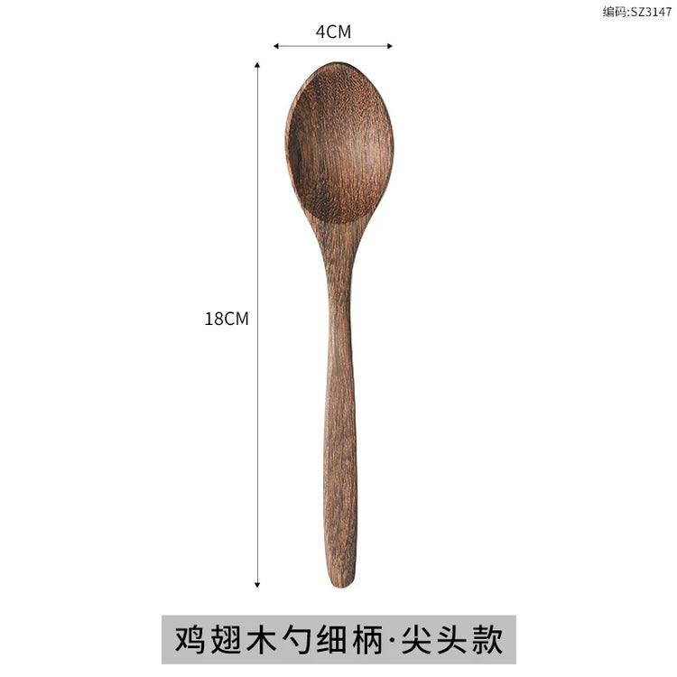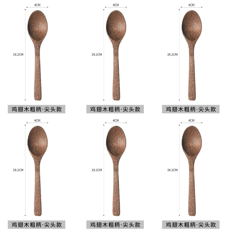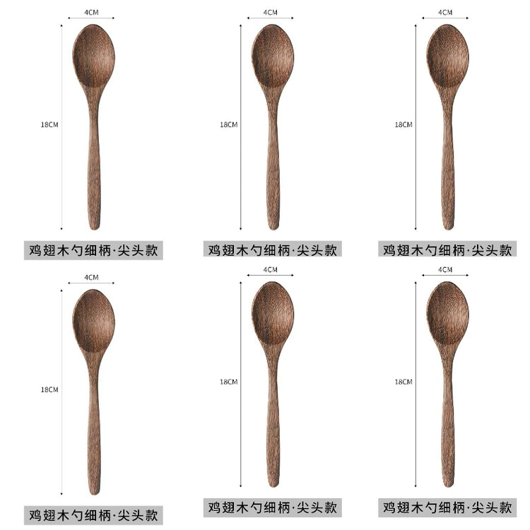 1-6pcs Wooden Spoon Chicken Wing Wood Long Handle Soup Spoon Honey Stirring Spoon No Lacquer No Wax Household Large Rice Spoon