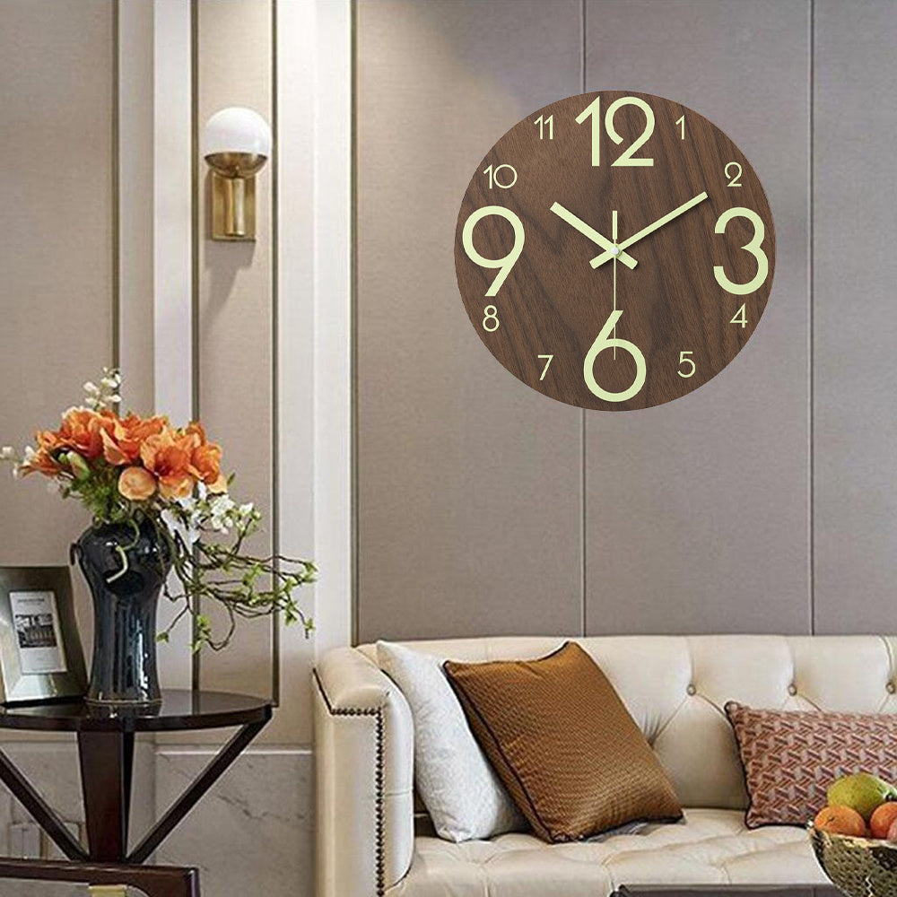 12-Inch Glow in the Dark Silent Wooden Wall Clock for Home Kitchen Office & Bedroom