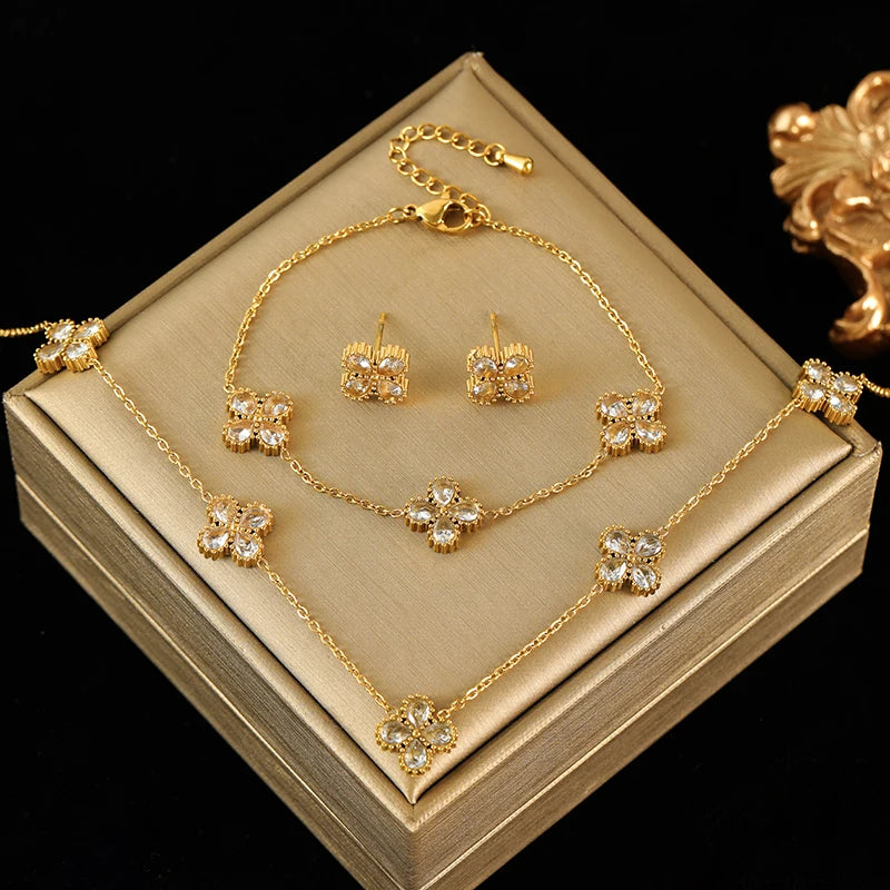 316L Stainless Steel White Zirconia Jewelry Set – Necklace, Bracelet & Earrings for Women