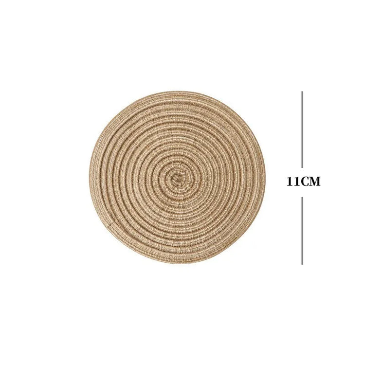 4pcs Round Table Mat Woven Ramie Placemats Anti Slip Dining Table Mats Non-Slip Tableware Bowl Pads Kitchen Drink Cup Coasters