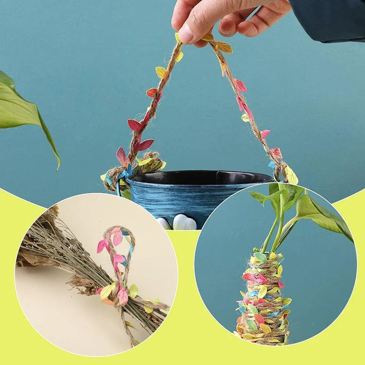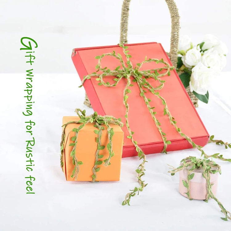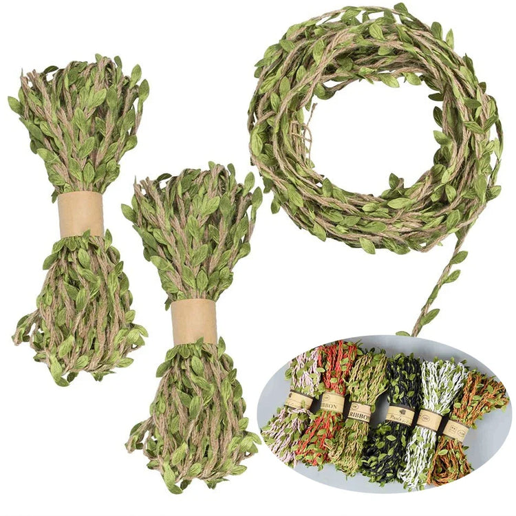 5Meter/lot Natural Jute Twine 5MM Burlap Leaf Ribbon with Artificial Vine Green Leaves for DIY Crafts Wedding Garden Party Decor