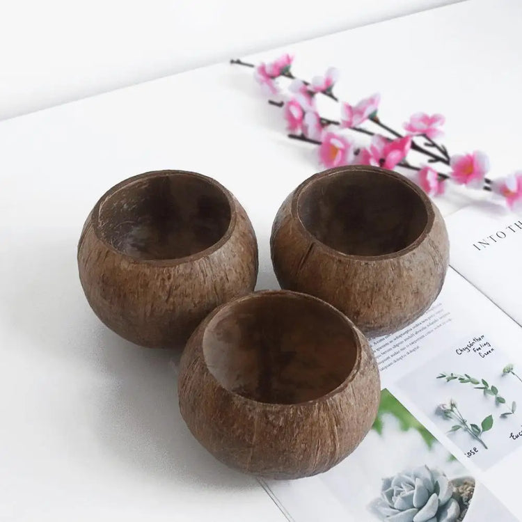 Coconut Shell Candle Holder Bowl Handmade Storage Bowl Burr Free Multi-purpose Natural Coconut Shell Candle Holder Storage Bowl