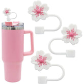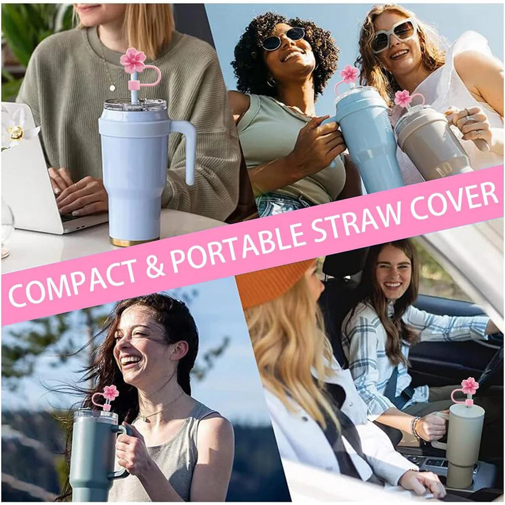 Flower Design Straw Covers Toppers Silicone Accessories for Stanley Cups 30&40 Oz Tumbler with Handle Reusable Straw Caps Tips