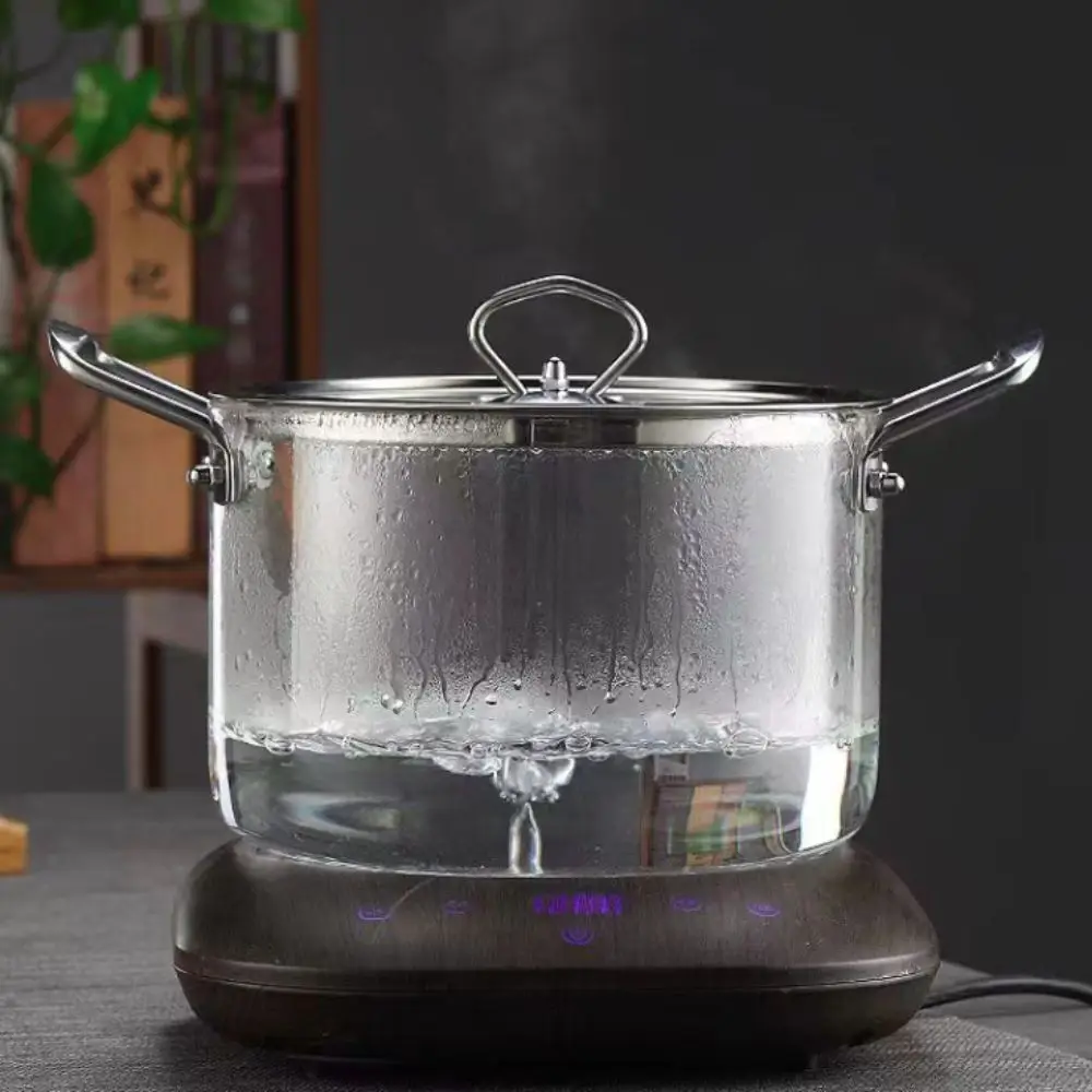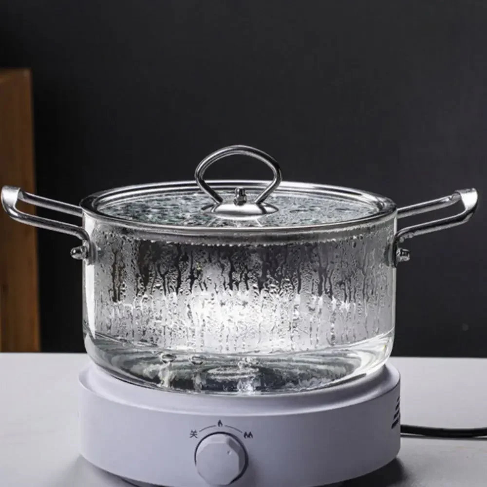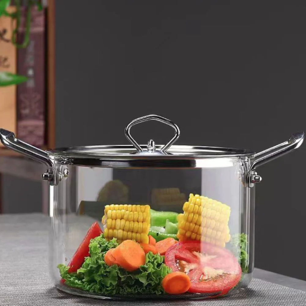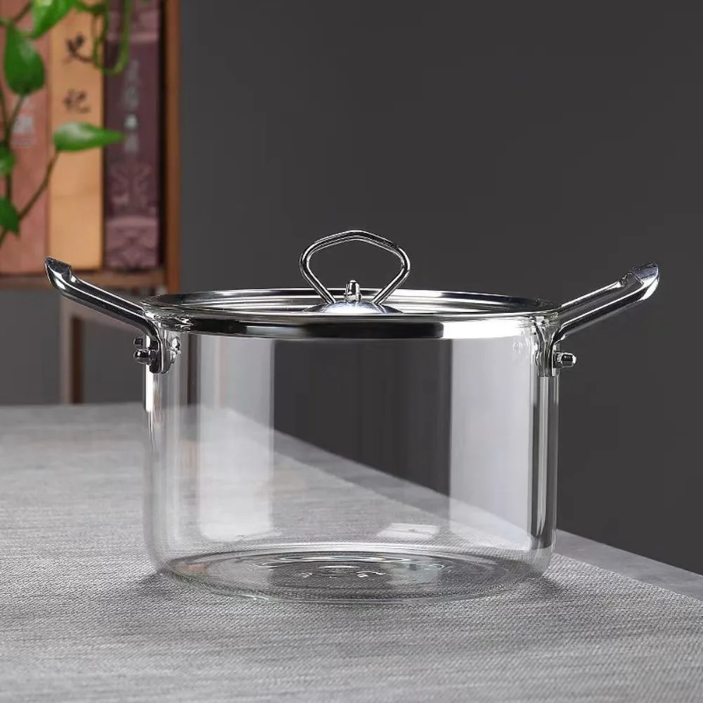 Heat-resistant glass double-eared transparent soup pot kitchen household high borosilicate glass stainless steel handle noodle