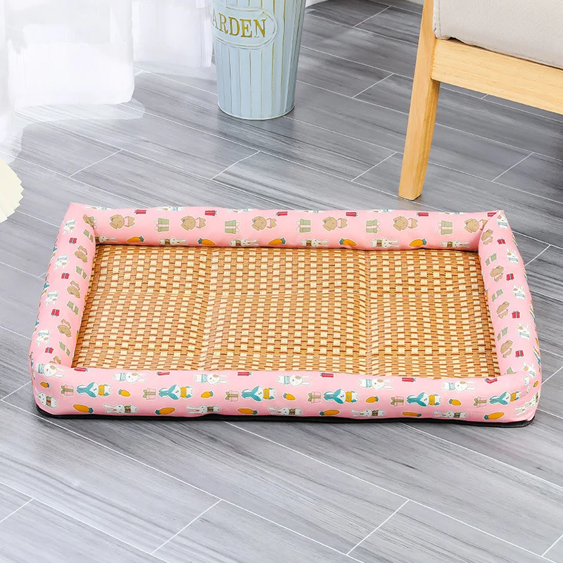 OUWO Summer Square Pet Bamboo Cooling Pad For Small Large Dog Cushion Breathable Antislip Cat Bed Mat Pet Dog Bed