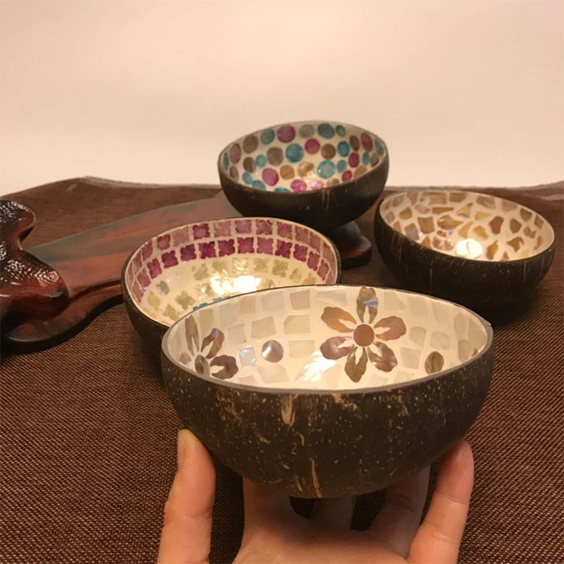 Painted Coconut Shell Bowl Shell Coconut Bowl Wood Bowl Home Decor Storage Salad Bowl Entryway Key Storage Tray