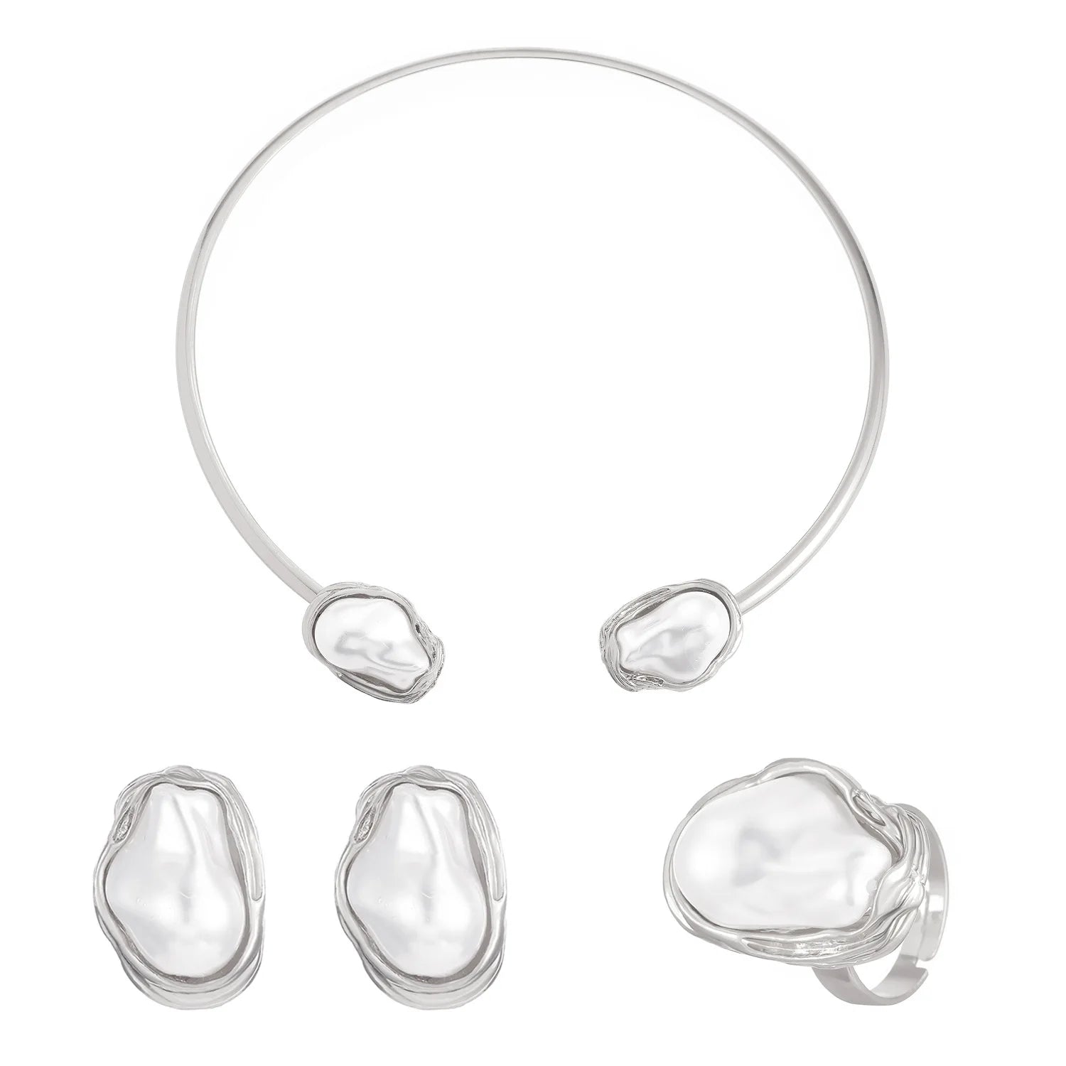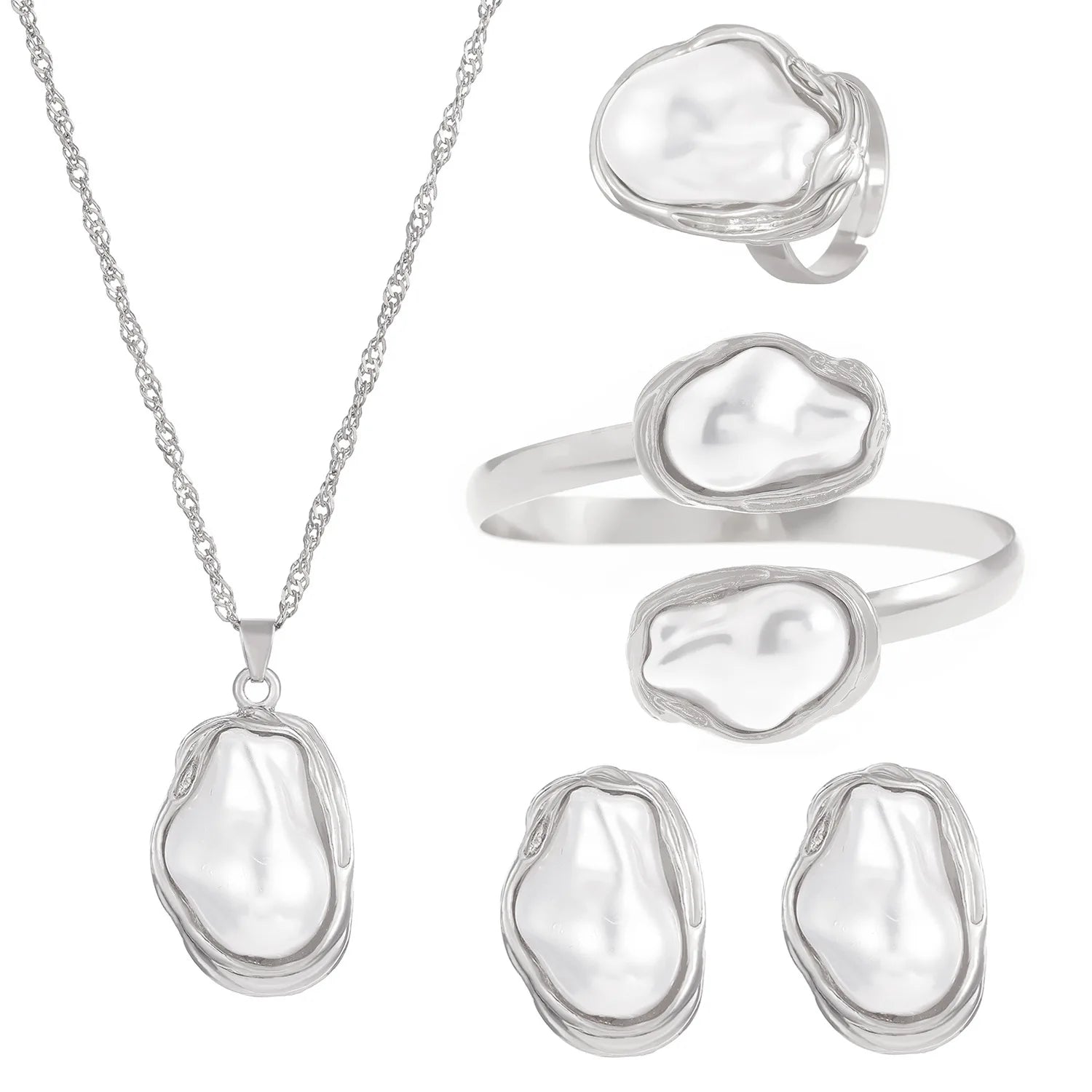 Trendy Baroque Pearl Necklace, Bracelet & Ring Set – Wedding & Party Jewellery for Women