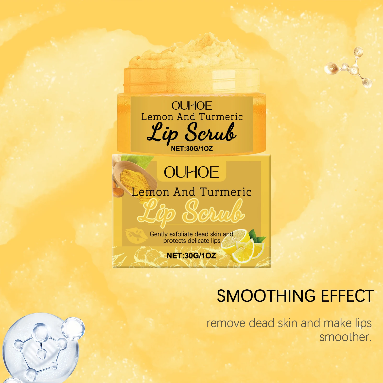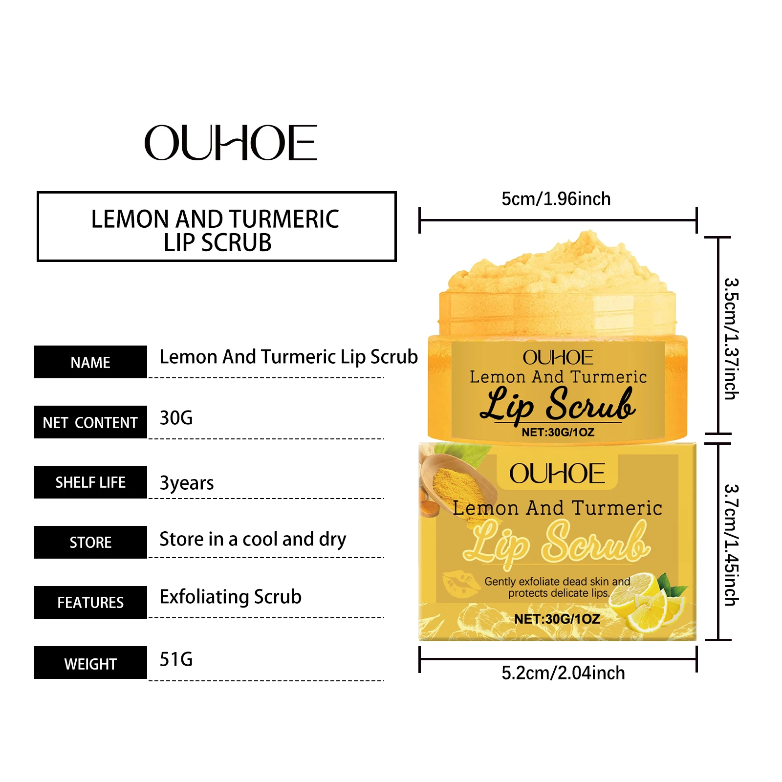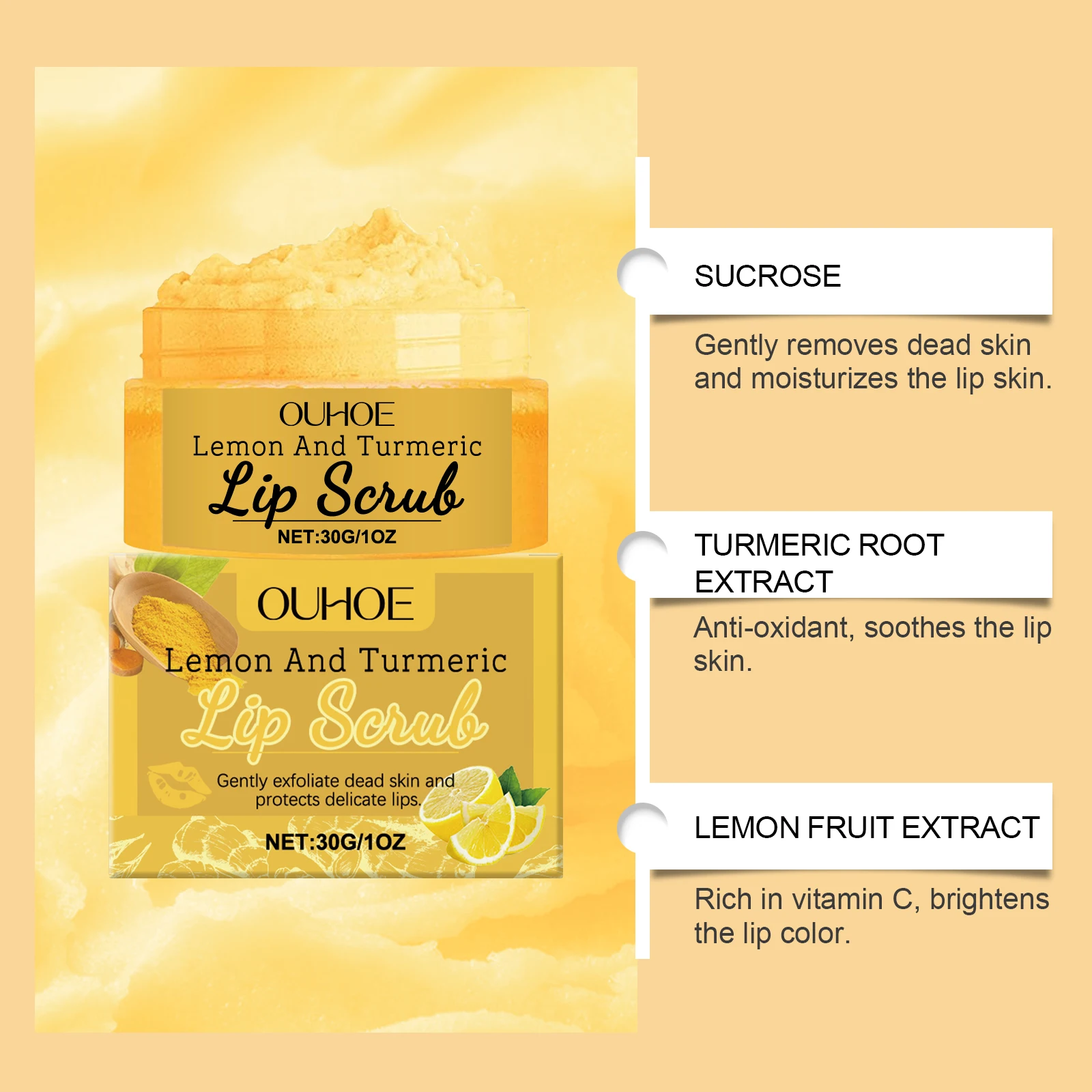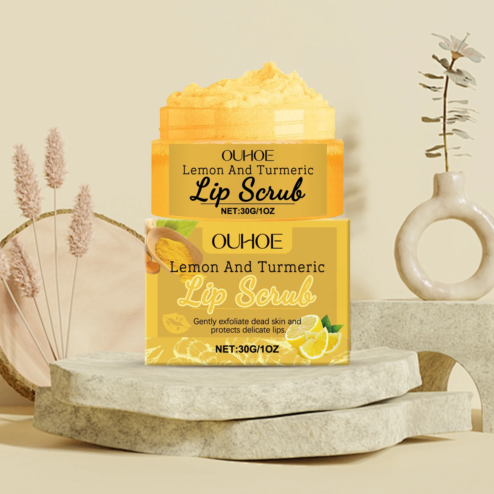 Turmeric Lemon Lip Scrub Gentle Exfoliator Remove Dead Skin Reduce Fine Lines Moisturizing & Nourishing Care for Dry Chapped Lip